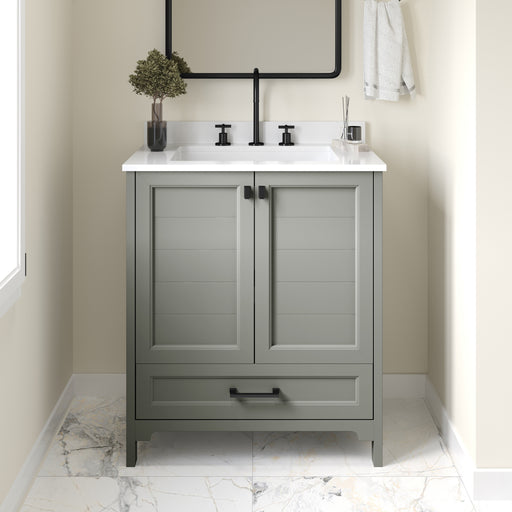 Mia Bathroom Vanity, Single Sink Cabinet with 2 Soft Close Doors, Shelf, and Bottom Drawer, Carrara Marble Finish Countertop